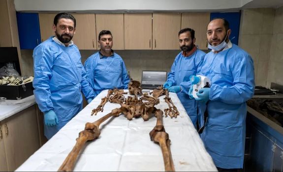 رئیس مرکز شناسایی هویت سوریها که به تازگی افتتاح شده، کنار دو میز ایستاده است که روی آنها استخوانهای ران قرار دارد. روی هر میز سفید چندلایه، ۳۲ استخوان ران انسان وجود دارد. آنها به طور مرتب در کنار هم قرار گرفته و شمارهگذاری شدهاند. دستهبندی، اولین وظیفه این حلقه جدید در زنجیره طولانی جنایت تا عدالت در سوریه است. «گور دسته جمعی مختلط» به این معنی است که اجساد یکی روی دیگری انداخته شده بودند. احتمال دارد که این استخوانها متعلق به برخی از صدها هزار نفری باشد که گمان میرود توسط عوامل بشار اسد، رئیس جمهور مخلوع و خاندانش که روی هم رفته بیش از پنج دهه بر سوریه حکومت کردند، کشته شدهاند. دکتر الحورانی میگوید اگر چنین باشد، آنها جزو قربانیان جدیدتر بودهاند: آنها بیش از یک سال پیش فوت نکردهاند.