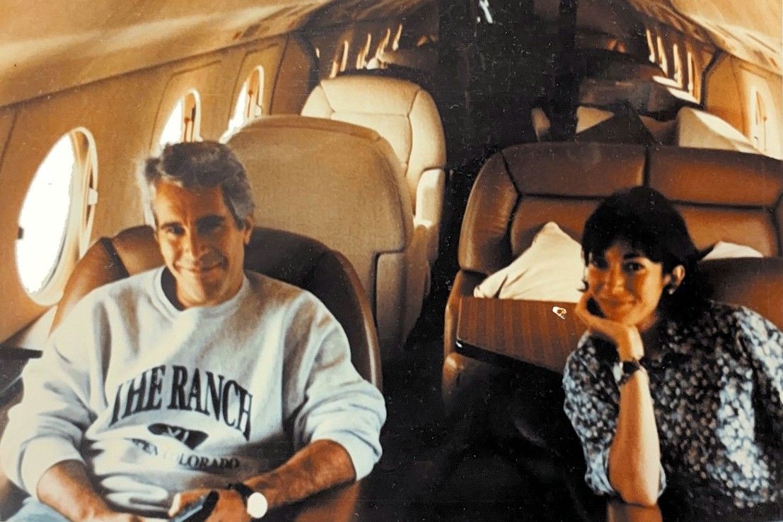 رفتار مکسول و اپستین در هواپیمای خصوصی: عکس‌هایی از بازیگوشی آن‌ها، از جمله قرار دادن پای اپستین در بلوز مکسول.