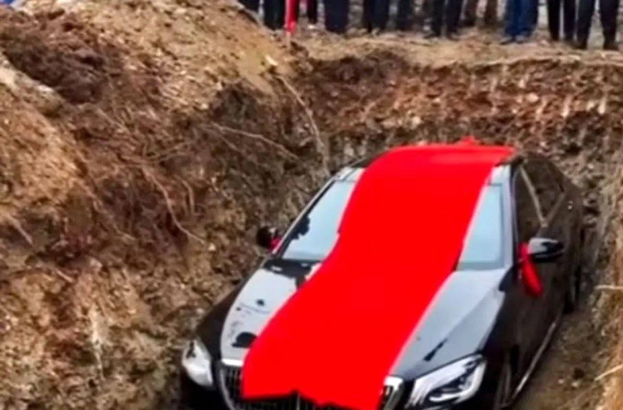 بر اساس گزارشها، این خانواده برای مراسم خاکسپاری یکی از بستگان خود، خودروی لوکس او را نیز به داخل قبر منتقل کردند. گفته میشود این خودرو بخشی از داراییهای مورد علاقه متوفی بوده و خانواده تصمیم گرفتهاند آن را بهعنوان نمادی از سبک زندگی او، همراهش به خاک بسپارند. تصاویر منتشرشده نشان میدهد که خودرو بهطور کامل در محل دفن قرار داده شده است.