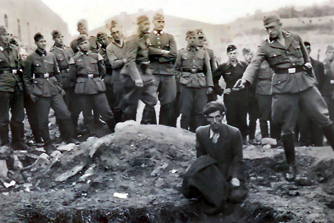 یکی از تکاندهندهترین تصاویر هولوکاست، عکسی است که در آن یک سرباز نازی عینکی، اسلحهای را به سمت سر مردی که با کت و شلوار زانو زده و تسلیم شده، نشانه رفته است. این مرد در کنار گودالی پر از اجساد قرار دارد و نیروهای آلمانی صحنه را احاطه کردهاند. این عکس که در اوکراین امروزی گرفته شده، برای دههها به اشتباه با عنوان «آخرین یهودی در وینیتسا» شناخته میشد و در هالهای از ابهام قرار داشت.